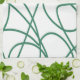 Modern konst i grönt på vitt.