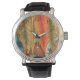 Den färgstarka målningen av höst löv på denna underbara klocka är ett bild mellan vatten och färg som jag målade upp för några år sedan. Jag målade upp det från ett foto av löven från ett träd av typen "rhus typhina" som växte i min trädgård, träd är också känt som "Stag's horn sumach" fantastisk hösten löv av guld, rött, fantastisk och blåaktiga färg nyanser ser väldigt vackra och de ger ut som lågor på en grönt på hösten. Denna realistiska konst skulle också kunna ses som abstrakt, men färg är som jag såg dem när jag målade upp dem. Dessa vackra höst löv verkligen står ut på den här mode-klockan. Jag har lagt till kontrasterande bruna höstnummer till den här handkloaken. Jag tänka den här coolan tittar på med den sjudande hösten så ser färg ut som underbarer och gör en unik gåva till någon speciell, eller så vill du bara behandla dig själv väl förtjänt när som helst på året.