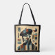 Modern konstman i mitten av århundradet som bär en tygkasse