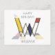Putsad, rolig, konstnärlig monogram. Här är bokstaven "W". Neoplasticism stil, eller De Stijl, linje och färg konstnärlig dekoration, den roliga fågeln sitter på bokstaven. Konstfältet är placerat under bokstaven. Mallnamnet "WILLIAM" är placerat under bilden. "Happy Birthday!" texten finns nära bilden. Du kan ändra eller ta bort alla texter, och du kan ändra bilden. Unik, en-av-en-typ vykort för en födelsedag eller en annan händelse. Använd gärna knappen "Redigera design" eller "Personalisera" (allt eftersom fallet är) i blå färg för att ändra typsnitt, färg eller position för malltexten. Var kreativ, anpassa, köp en och var glad!