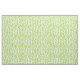 Denna väv har en modern utformning av halvcirklar i grönten som ser ut som kopp som har fastnat tillsammans med turkosa stjärnsprängningar och rektanglar.