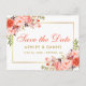 Modern Akvarell Blomma Korall Guld Save The Date Förlovningskort - Guld Text
