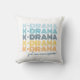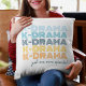 Modern koreansk dramafan kastkudde med upprepade "K-Drama"-ord i roliga, ljusa nyanser av blå och orange med frasen "bara en episod till". Den kan anpassas med ett namn eller anpassad text på baksidan av kudden i en mörk blå nyans.