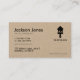 Dessa affärskort av organiska brunkraftslager har en unik och modern utformning som känner sig raffinerad/högtstående och maskulin, samtidigt som de förblir till synes ödmjuka. Baksidan av dessa kort har en solid svart silhuettbild av en färgpensel, med borst som utgör formen av ett hem, åtföljd av två linjer text nedan. Kortens ansikte har svart och träkolstext färg, liksom samma svarta, enkla, silhuetgrafik i högernas övre handhörn.