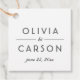 Modern och elegant pappra och svarta bröllopsfester med märkre anpassningsbar har ett enkelt och minimalistiskt svart monogram av bridens och brudgummens namn och bröllop-datum på framsidan. Utrymme för ett foto finns på baksidan - perfekt för visning av ett favoritfoto för förlovningen av paret.