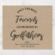 Be din bror, syster eller bästa vän att vara ditt barns gudförälder med vin flaska-etiketter. Unika moderna vin-etiketter har kalligrafiskript, ditt meddelande på en Kraft struktur-bakgrund.
