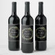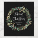 Modern krans och skript | God jul Black Vinflaska Etikett