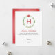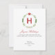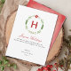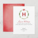 Designen har en fantasifull grön och röd modern julkrans med familjens monogram i rött, skrivstil och sans-serif-teckensnitt.