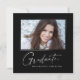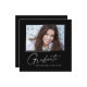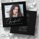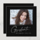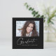 Modern kvadratisk minimalistisk utformning, elegant "Photo" studenten-meddelandekort, med inslag av modern text med ett unikt calligraphy bläck-skript i vitt för mörkare bakgrundsalternativ i färg. Student bild på kortets framsida accentueras med en delikat och minimalistisk övertoningsmarkör. Kortets baksida ger personlig textutrymmen för information om studenten. Svartvit eller anpassa bakgrunden så att den passar din skolas primära färg eller valfritt färg. Perfekt för högstadiet, högskolan och universiteten grad student.