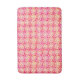 Badmat i ett modernt, abstrakt badbad av spiral i kvadrat i kräm och mjuka skuggor av persikofärgad rosa, korall rosa, korallell orange och orkidé