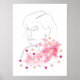 Kvinna med rosa vattenfärgskonst Blommor Line Art , Konturutskrift av blommor, konst med en enda linje, konst av honkön, konst av en linje Teckning, konst av blommor av kvinnlig konst