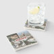 Modern design med 4 bilder i ett rutnät med centreraxt mall i dammig röd låda "kärlek" med hjärtan stentallrik.