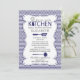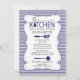 Modern Lagrar, köket Inbjudningskort för möhippan med en snyggt marin blå chevron zigzag mönster-bakgrund med söta köksredskap och typografi. Vänd vår inbjudan om du vill visa ett matchande trendig chevron mönster tillbaka för en speciellare beröring i extra. Finns i vår butik i ett stort urval av populära möhippa färger för en möhippa i chicen vår, sommartid, möhippa eller vintermöhippa. Anpassningsbar färg begäran välkomnas alltid.