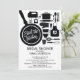 Snyggt Black & white lagrar köksinbjudan med kök av verktyg, inklusive en friteringspenna, handmixer, kökstimer, krukor, möhippor, apron, visk, mät kopp, pothölje & kopp. Besök vår butik för att se den här köksduschen inbjudan i andra färg.