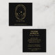 Denna moderna utformning av affärskortet har en logotyp av två öppna händer som förmedlar läkekonsternas energi. Bara i en ovala ram är ditt namn eller varumärke namn formaterat i böjd text längs överkanten. Med det här dubbla-sidiga kortet kan du få gott om utrymme på baksidan för information och kontaktinformation. Skapat för professioneller i hälsa, massageterapeuter, kemityrare, akupunktur, estetiker, spa, handgjorda varor och mycket annat. Faux guld på den svarta paletten färg är modern och elegant. Originalteckning och design © 1201AM Design Studio