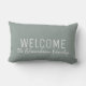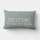 Det moderna lantliga gröna namn för monogramen för familjen för fauxburlapvälkomnandet kudder.