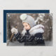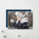 Skicka vinterglädje med det här moderna helgdag-fotokortet som innehåller ditt favoritfotokort för vågrät bild som är inramat av subtila snö-blommor. "Låt det snöa" visas i trendigets vita kalligrafiskript med familjens namn som visas nedan. Baksidan visningar en flottbakgrund som sprinklats med vitt snö, eller anpassa färg för att matcha stil. En färsk utformning av säsong som är perfekt för jul- eller vintertid i hälsning.