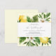 Den här bohos moderna bröllopsinbjudan till citronmärket på gulten är perfekt för vår eller sommar-bröllop. I Medelhavsmodellen finns det klara och vackra citroner med vita blommor och löv av elegant grönt.