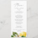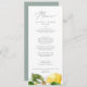 Det här moderna citronbröllopsmenykortet är perfekt för vår eller sommar bröllop. I Medelhavsmodellen finns det klara och vackra citroner med vita blommor och löv av elegant grönt. Den här menyn kan användas för bröllopsmottagning, repetitionsmiddag eller vad som helst.