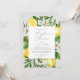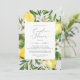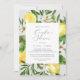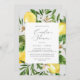 Denna moderna citronskusinbjudan till grått par är perfekt för en vår- eller sommarmöhippa. I Medelhavsmodellen finns det klara och vackra citroner med vita blommor och löv av elegant grönt.