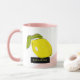 Det här trendiget och det moderna personlig mugg har ditt namn och två gulter citroner på geometrisk rosa/persiko-blockbakgrund för färg. Anpassa den efter dina behov. Du hittar matchande produkter i min butik.