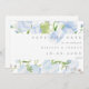 Ett vackert modernt bröllop spara datum med ljusblå vattenfärgblommor. Anpassa med dina detaljer i en modern layout med redigerbar QR-kod på motsatt sida.