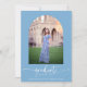 Modern Elegant Light Blue Script Studenten Arch Photo Announcement med handskript för elegant tillsammans med ett foto i fullt på framsidan och ett fyrkantigt foto på baksidan. All text och färg är fullt anpassade - perfekt för elegantens tillkännagivande för studenten. Kontakta oss på cedarandstring@gmail.com om du behöver hjälp med designen eller matchande produkter.