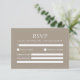 Make your wedding stationery effortlessly stylish with this modern, minimalist RSVP card in light brown tone. Its clean, elegant design and simple layout make it easy for guests to respond, confirm number of guests and food choices while keeping your wedding look cohesive and stylish. Perfect for couples who want a chic, classic, and minimal touch for their special day.