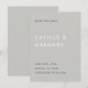 The Aesthetic: Make a high-impact announcement with the "Understated Minimalist" edition of our Signature Palette: a modern light grey Save the Date. Designed with an intentional "billboard effect," this piece utilizes oversized, white all-caps typography to ensure your wedding date is the unmistakable star of the show. The muted grey background provides a sophisticated, contemporary canvas for the striking Dongle font, creating an industrial edge that is both architectural and confident. Visual Variety & Hierarchy: As the first piece of your wedding suite, this Save the Date is designed to be bolder and more graphic than the formal invitation. By playing with scale and dramatic space, it creates a sophisticated "gallery-style" hierarchy that feels like a piece of custom editorial art. The crisp white lettering on the grey cardstock ensures your announcement is readable from a distance while maintaining a high-fashion, "fine art" energy. Personalization & Quality: This fully customizable template allows you to effortlessly update your names, date, and location while maintaining the perfectly balanced typographic layout. For a premium, non-reflective finish that highlights the neutral intensity of the grey background, I highly recommend our Matte paper stock; this tactile, heavy-weight finish perfectly complements the industrial-chic aesthetic. A Designer’s Tip for Your Suite: To ensure a cohesive guest experience from start to finish, I have curated a full matching suite in this signature Light Grey. Pair this "Bold" Save the Date with our "Refined" invitations and coordinating minimalist address labels for a high-end, branded look that starts the moment your guests check their mailbox.