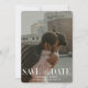 Informera dina gäster om det kommande bröllop-datumet med de här moderna Spara datumkorten med ett fullt utfallsfoto för lodrät, modern typografi, QR-kod för anpassningsbarnas URL på baksidan och en färgad tillbaka i en lätt grönt. Alla färg kan ändras så att de passar temat stil och bröllop. Du kan också växla mellan olika pappra former och storlekar. Använda designen verktyg om du vill anpassa den här Spara datummallen för att göra ytterligare ändringar om du vill. Behöver du hjälp? Släpp ett meddelande!