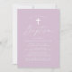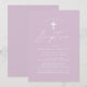 De enkla baptisminbjudningarna innehåller ett kalligrafiskt skript med avslappnad och ljusa lilor för en design som är perfekt för en modern baby-baptism. Anpassa elegantens baptisminbjudningar med ditt barns händelseinformation om namn och religiösa nedan. Baksidan av den lila baptisminbjudan ger utrymme för ytterligare text och foton.