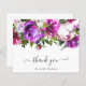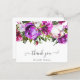 Blommigtens budget Bröllop Tack för ditt kort med peonier i pulserande och djärv lila, fuschia och violett tillsammans med "tack" i ett visstiskt skript med svindlerier. De här elegant juveltonen Bröllop Tack. Ni kort i ljusa skuggor av lila är underbara under en sommar bröllop.