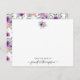 Modern Lila Blommigt Watercolor Script Swash Note Card Utformningen har vattenfärgsfärg, lila, blommigt och rosa samt bladdelar.