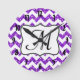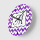 Modern Lila Chevron Monogram första väggklocka