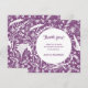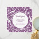 Söt, elegant blommigt botaniska silhuetter av naturen, vit lövning, löv och blommor på lila. Ett fantastiskt passande kort för att tacka dina gäster i bröllop för en underbar dag.