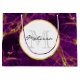 En presentväska med en vacker abstrakt mönster med en marmordesign. Blandning av rik lila färger i kombination med roterande rosett band mellan Faux och guld under hela konstruktionen. En cirkel med faux guld-foil gräns överst med personlig inuti.