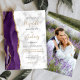 Den lämnat kant i eleganten i den moderna bröllopsinbjudan har en lila vattenfärgsagat gräns som trimmas med faux guld glitter. Anpassadet kombinerar svartvitt och handskrift i guld-färgad, tryckplåt och kursivt typsnitt på grått- och vit marmorbakgrund. Byt enkelt ut exempelbilden på baksidan mot ett eget lodrät-foto.