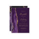 Den lämnat kant i eleganten i den moderna bröllopsinbjudan har en lila vattenfärgsagat gräns som trimmas med faux guld glitter. Anpassadet kombinerar handskrift, rityta och kursivt typsnitt med guld färgad på mörkens plommonbakgrund. Den omvända sidan har en matchande lila- och guld-agate-design.