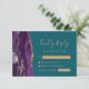 Det moderna djurutrymmeskortet i elegantens lämnat kant har ett lila vattenfärgsagat i gräns som trimmas med faux guld glitter. Rubriken "Kinly Reply" visas i handskriftsskript, med anpassade nedanför i guld-färgadens typsnitt på en tealbakgrund. Den omvända sidan har en matchande lila- och guld-agate-design.