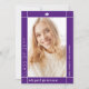 Modern lila Class of 2025 studenten fotoannonsering. Den pulserande bakgrunden för lila kompletteras av ett elegant vitt gräns som elegant ramar ditt student, skapar det som meddelandets brännpunkt. Student namn och andra viktiga uppgifter är väl placerade utanför ram och ser till att de är tydliga. Vänd på tillkännagivandet och du kommer att hitta ett annat foto tillsammans med alla viktiga detaljer om studenten och skapa en minnesvärd keepsaké för denna speciella milstolpe i ditt liv.
