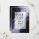 Informera dina vänner och nära och kära om ditt kommande bröllop med det moderna lila marmor bröllop spara-date. Med anpassadet kan du enkelt lägga till de uppgifter som behövs. För dina unika inbjudningar finns en mängd olika pappra typer och stilar i hörnet, tillsammans med alternativet att ladda ned om du föredrar ett digitalt format.