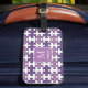 Behålla din resväska säker med vår lila och vita puzzel delar-mönstrad bagagemärkning. Denna roligt fäster på ett bekvämt sätt vid biet i bagaget och skapar det lätt att upptäcka bagagekrav. Finns i en mängd färg och mönster, anpassat med ditt monogram och namn för ett verkligt unikt tillägg till resa!