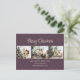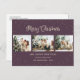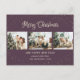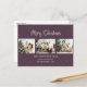 Elegant anpassningsbar lila fotovykort med fotokollage och ett vackert handskript, samt fallande snö. Anpassa enkelt det här lila fotot-God jul vykortet med bilder, text, år och familj namn. Du kan också ändra bakgrund och teckensnitt till valfri färg.