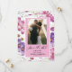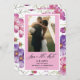 Modern Lila Rosa Blommar Script Photo Bröllop Spara Datumet