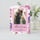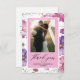 Modern Lila Rosa Blommar Script Photo Bröllop Tack Kort