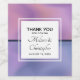 Bröllop flaska-märken med modern snyggt. Rosa och lila färg roterar runt och skapar en övertoningseffekt på eleganten. Ett fyrkantigt lager överst med texten inuti.