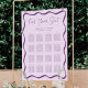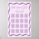 Upprätthåll en tydlig layout med den här moderna Lilan Vågigt Poster för sätesschemat för Ram Bröllop. En lätt lila bakgrund med fetstilt lila vågigt upp till 16 bord, där gäst namn visas under varje rubrik. Överst skrivs "Hitta ditt säte" i handskript, medan namn och bröllop anpassar designen. Välj en professionell som ska skrivas ut eller hämtas omedelbart för utskrift hemma.