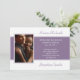 Modern lila vit fotopost bröllopsfirande inbjudningar