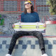 Modern Lime Green White Tävla Rand Monogrammed Mini Skateboard Bräda 18,5 Cm