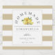 Citroner och löv i rustiska vattenfärger, modern limoncellodrycksetikett. Etiketter, chic, skorstensbeige och vit bakgrund rand mönster.